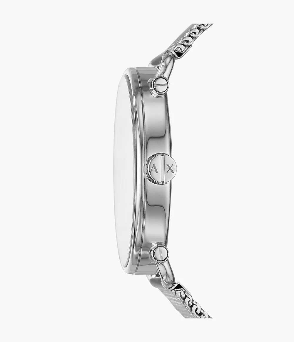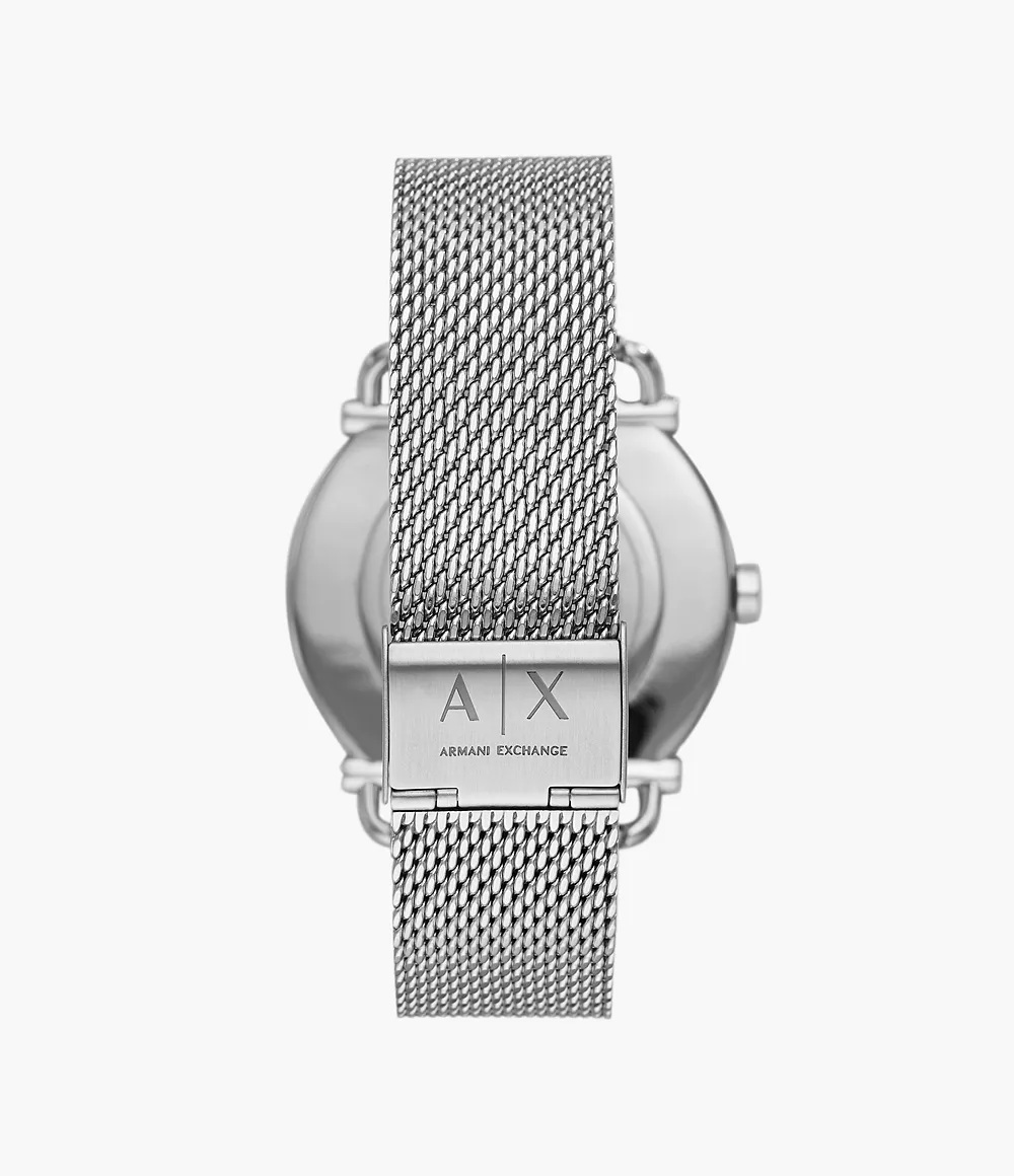 Armani Exchange Rocco Plain Black Dial Silver Mesh Steel Quartz